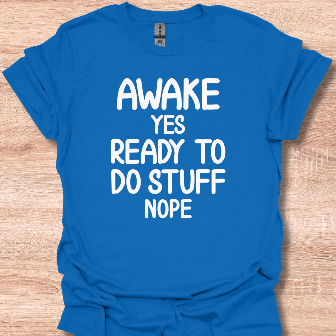 Awake Yes Ready To Do Stuff Nope Funny T-Shirt
